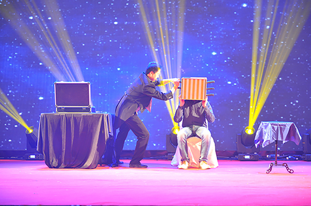 還有驚心動魄的魔術表演,臺下的吃瓜群眾為表演者捏一把汗啊!