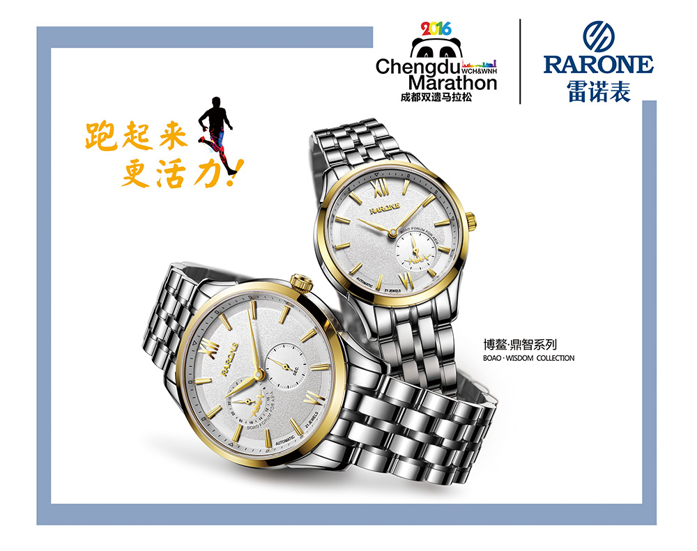 雷諾表作為商務(wù)手表領(lǐng)域的專業(yè)品牌,倡導(dǎo)職場人士8小時之外的健康生活,而跑步就是最簡單、最容易參與的運動方式。2016年3月,雷諾表牽手天府之國——四川,正式成為2016年“成都雙遺馬拉松官方指定計時用表”!