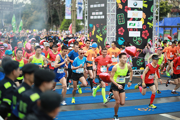 2018年3月18日,一年一度的成都雙遺馬拉松在都江堰隆重舉行。來自世界29個國家34個省市的3萬多名參賽選手齊聚馬拉松賽道起點。雷諾表作為賽事官方指定計時用表,為比賽事精準計時。在起跑倒計時5分鐘、3分鐘、1分鐘后鳴槍開跑,選手們激烈追逐、奔騰如流,場面十分激烈。